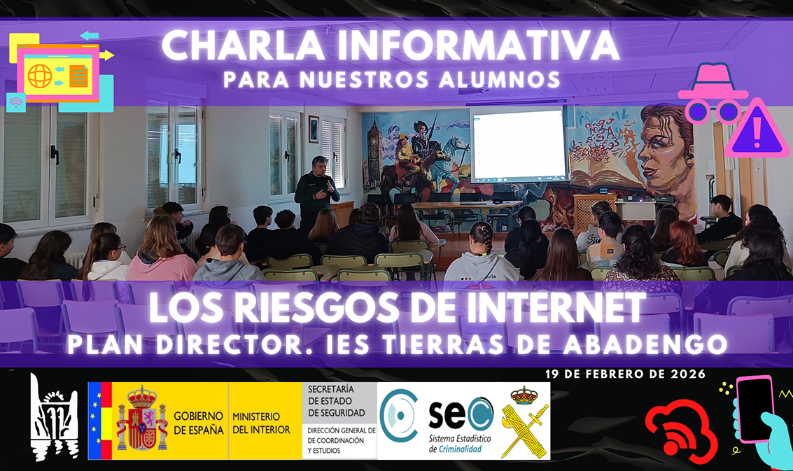 Hoy, 19 de febrero de 2026, el IES Tierras de Abadengo ha acogido una nueva sesión del Plan Director para la convivencia y la mejora de la seguridad en los centros educativos y sus entornos, en esta ocasión dirigida al alumnado de distintos niveles educativos. La actividad, coordinada por el centro en colaboración con la Guardia Civil, se enmarca en las actuaciones preventivas previstas para promover el uso responsable de las tecnologías y favorecer entornos escolares más seguros.